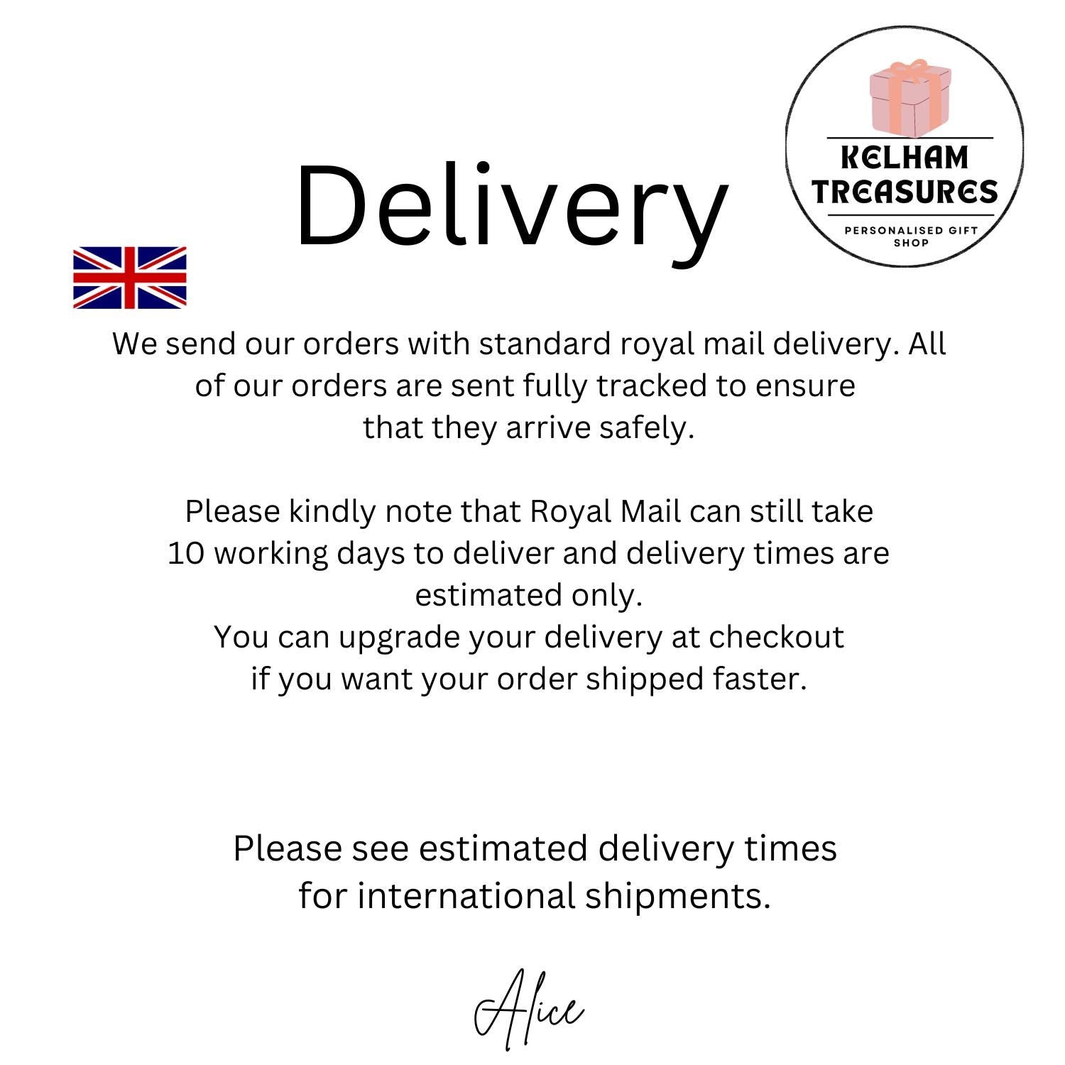 Your personalised gifts are carefully crafted to order with attention to detail. Processing takes up to 3 working days to ensure every mug, tumbler, and glass meets our family business quality standards.